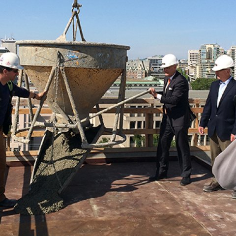 Chard Development, Mayor Dean Fortin and local VIPs took part in a topping-off ceremony today at Duet in James Bay to celebrate the development reaching full height, a major milestone toward its completion in November 2014.